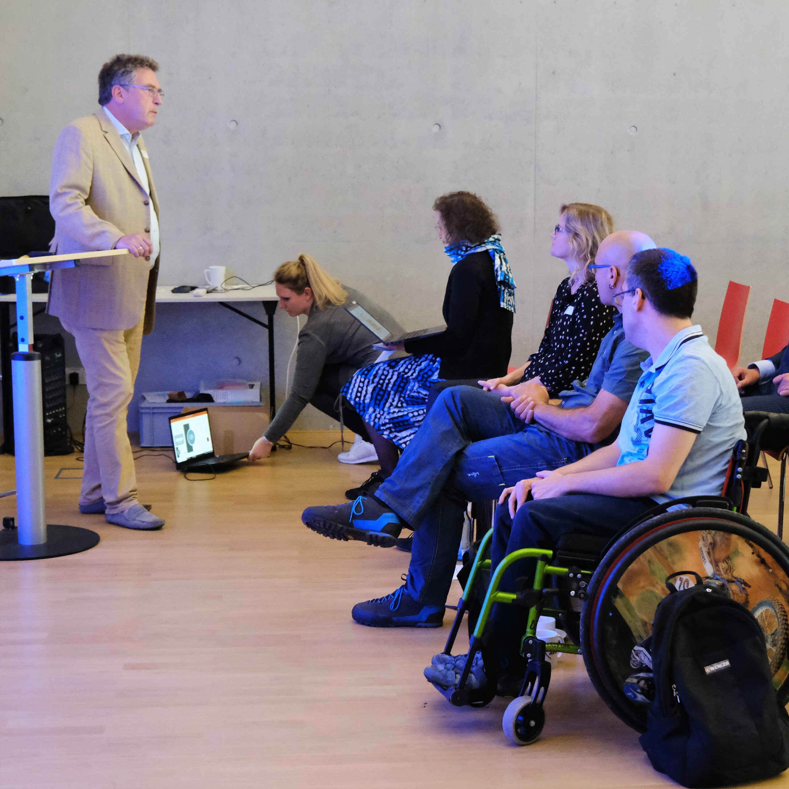 Wir blicken zurück auf eine sehr gelungene Veranstaltung mit Vorträgen und Diskussionen, moderiert von Frank Schaffrath, Referent Fachbereichsleiter Teilhabe und Inklusion (Foto 2) und mit einer Eröffnungsrede von David Eckardt (Foto 3), Geschäftsführer des AWO Landesverbandes Sachsen. Wir danken unseren Referent:innen Prof. Dr. Stefan Büttner-von Stülpnagel, Dr. Karolin Kuhn & Frank Eggert – CSW Christliches Sozialwerk gGmbH, Torsten Siegemund – Bundesfachstelle Männergewaltschutz, Nico Theuerkorn – Werkstattsprecherrat LAG Sachsen e.V., Fachstelle KogGE (Foto 1) und nicht zuletzt unseren Kolleginnen Judit Assenheimer und Bianca Stephan (Foto 4+5) für die Durchführung der Veranstaltung und Präsentation des Projektes. Mit dabei waren Vertreter:innen von Einrichtungen und Diensten, Landesbeauftragte für Menschen mit Behinderung, unter anderem Michael Welsch, Landesbeauftragter für Inklusion der Menschen mit Behinderungen, Sächsische Staatskanzlei. Wir danken allen Beteiligten für den interessanten Austausch!