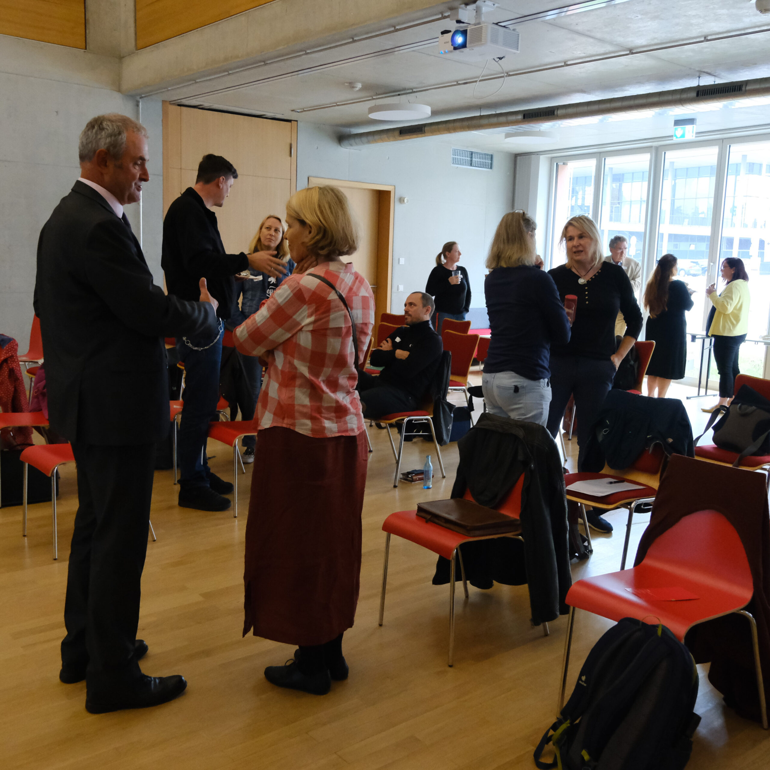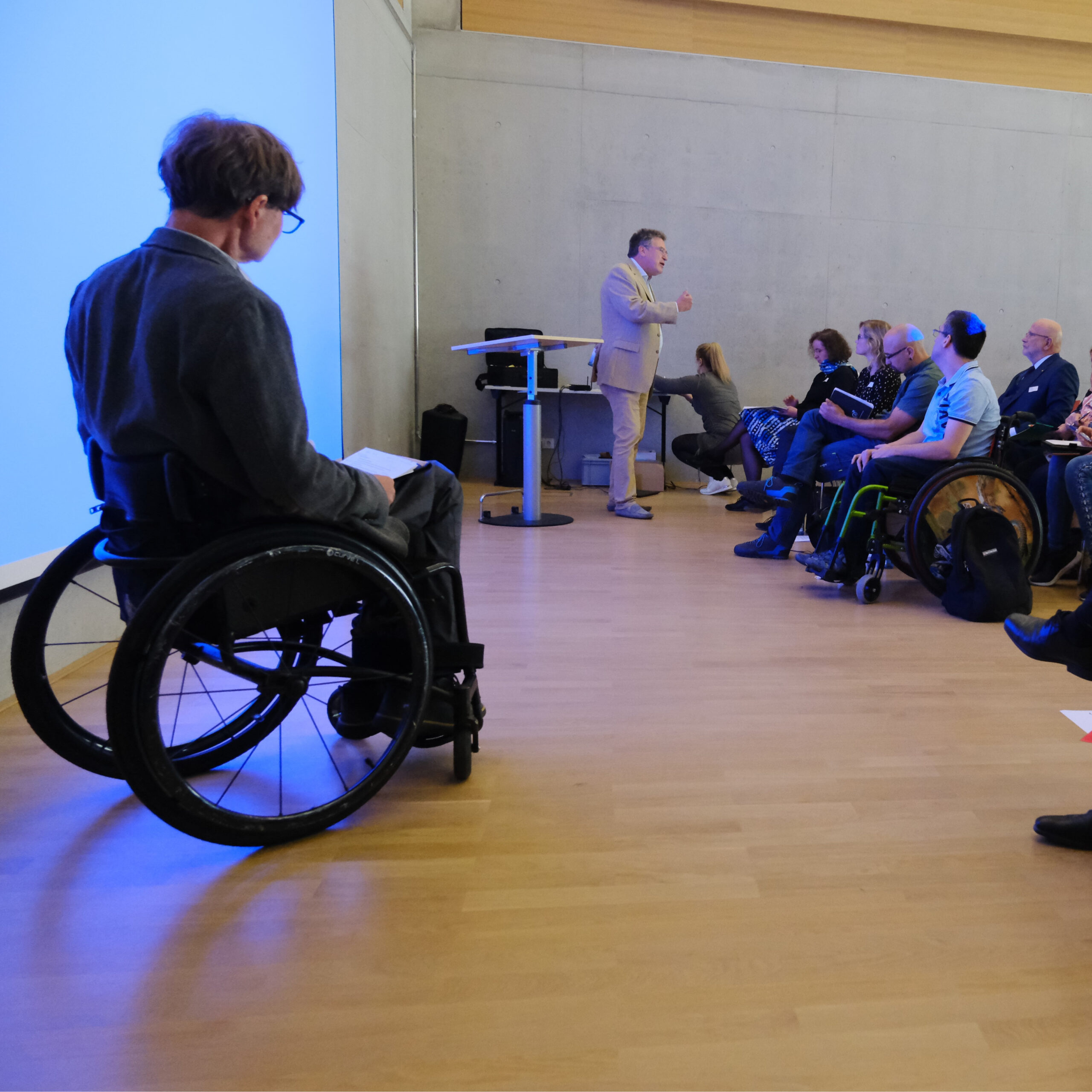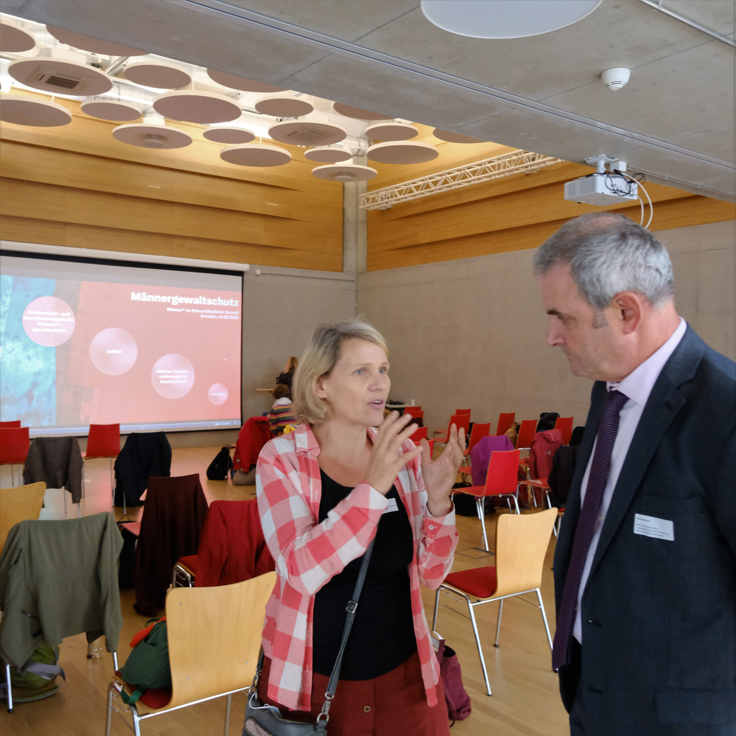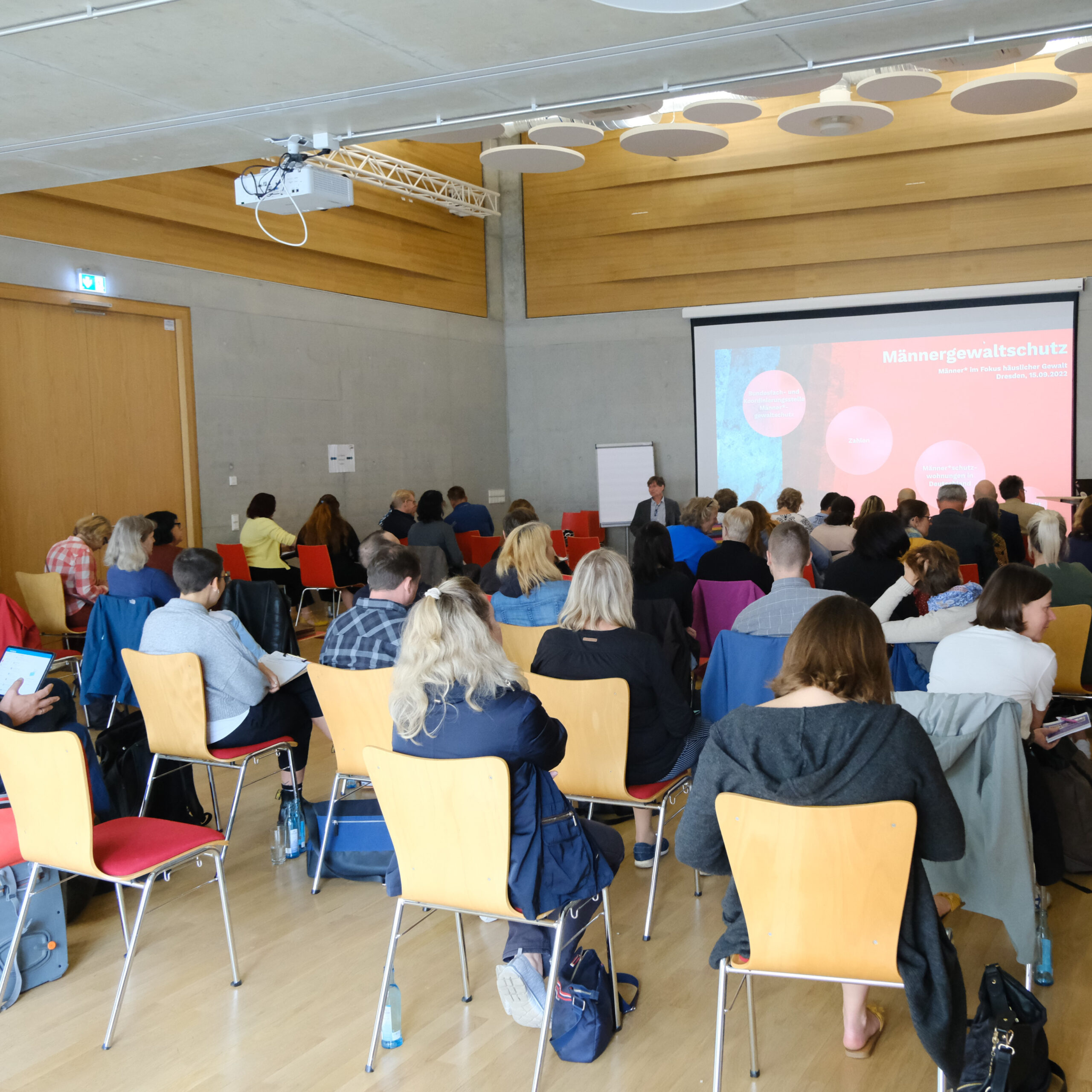 Wir blicken zurück auf eine sehr gelungene Veranstaltung mit Vorträgen und Diskussionen, moderiert von Frank Schaffrath, Referent Fachbereichsleiter Teilhabe und Inklusion (Foto 2) und mit einer Eröffnungsrede von David Eckardt (Foto 3), Geschäftsführer des AWO Landesverbandes Sachsen. Wir danken unseren Referent:innen Prof. Dr. Stefan Büttner-von Stülpnagel, Dr. Karolin Kuhn & Frank Eggert – CSW Christliches Sozialwerk gGmbH, Torsten Siegemund – Bundesfachstelle Männergewaltschutz, Nico Theuerkorn – Werkstattsprecherrat LAG Sachsen e.V., Fachstelle KogGE (Foto 1) und nicht zuletzt unseren Kolleginnen Judit Assenheimer und Bianca Stephan (Foto 4+5) für die Durchführung der Veranstaltung und Präsentation des Projektes. Mit dabei waren Vertreter:innen von Einrichtungen und Diensten, Landesbeauftragte für Menschen mit Behinderung, unter anderem Michael Welsch, Landesbeauftragter für Inklusion der Menschen mit Behinderungen, Sächsische Staatskanzlei. Wir danken allen Beteiligten für den interessanten Austausch!