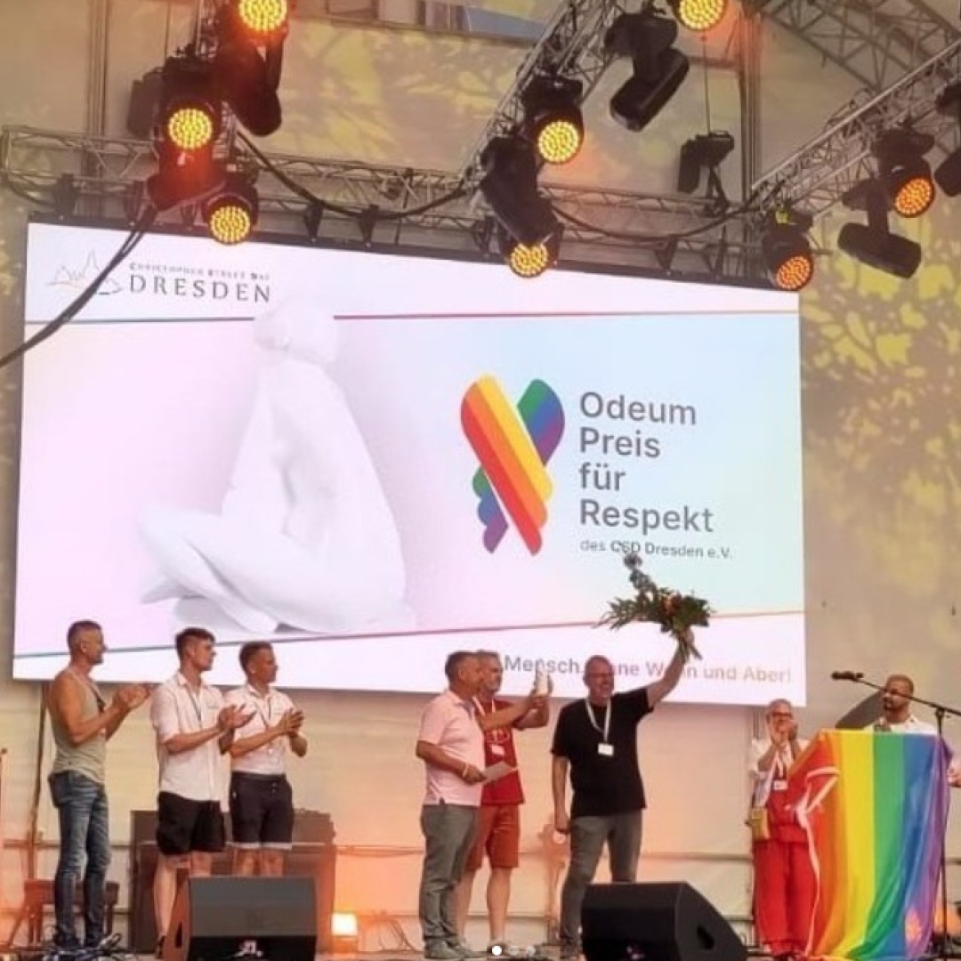 Am Abend wurde die AWO Sachsen mit dem ODEUM Preis für Respekt des CSD Dresden e.V. ausgezeichnet. Der Preis wird für besonderes Engagement in der Unterstützung der politischen Ziele des CSD und herausragender gesellschaftspolitischer Verantwortung übergeben. „Die Auszeichnung mit dem ODEUM Preis ist für uns eine außergewöhnliche Ehre und zugleich Verantwortung, unser Engagement für Vielfalt und ein selbstbestimmtes Leben für alle Menschen, mit vollem Einsatz weiterzuverfolgen“, erklärte dazu Jens Krauße, stellvertretender Vorsitzender der AWO Sachsen: „Wir freuen uns sehr darauf, die schöne und vertrauensvolle Zusammenarbeit mit dem CSD Dresden in den kommenden Jahren fortzusetzen.“
