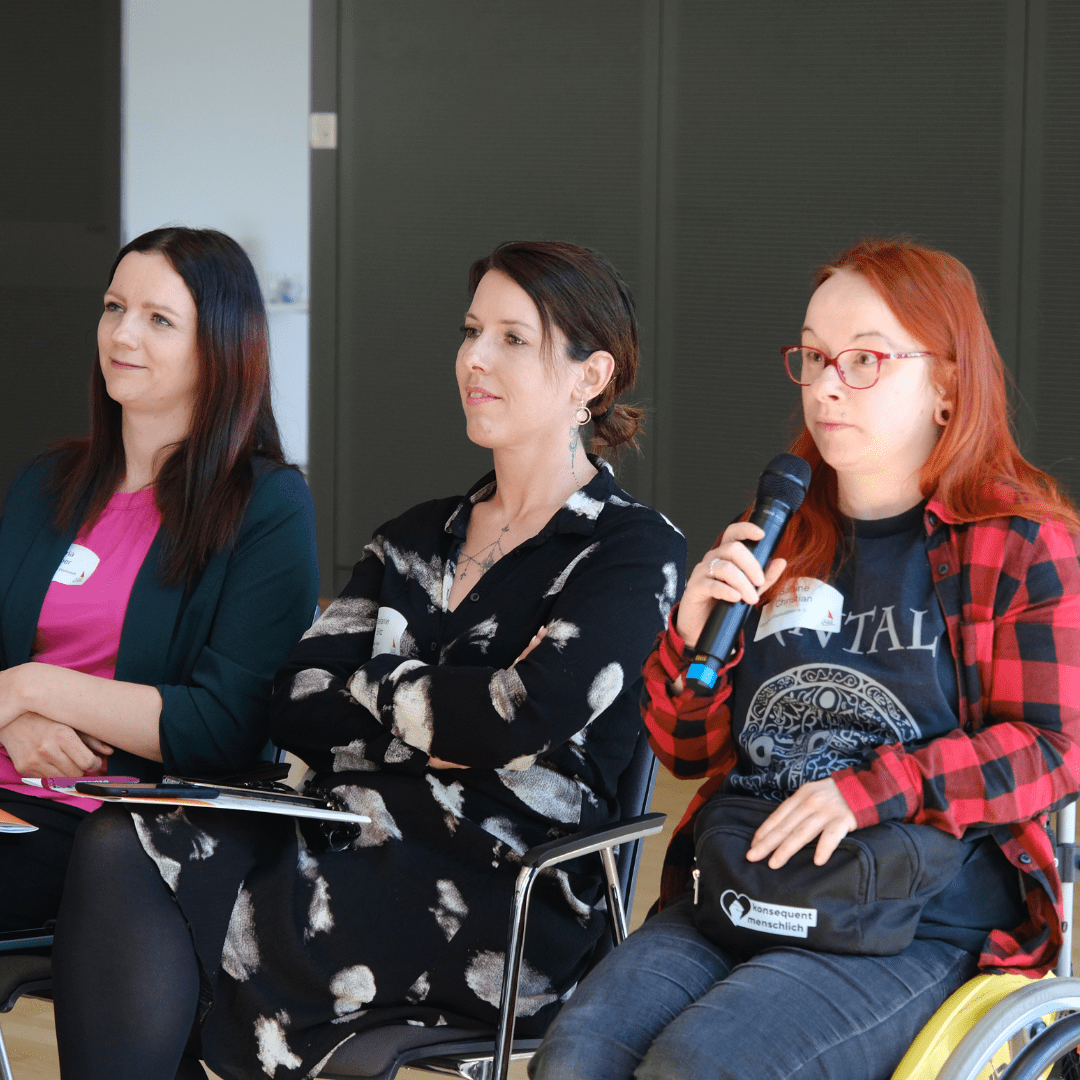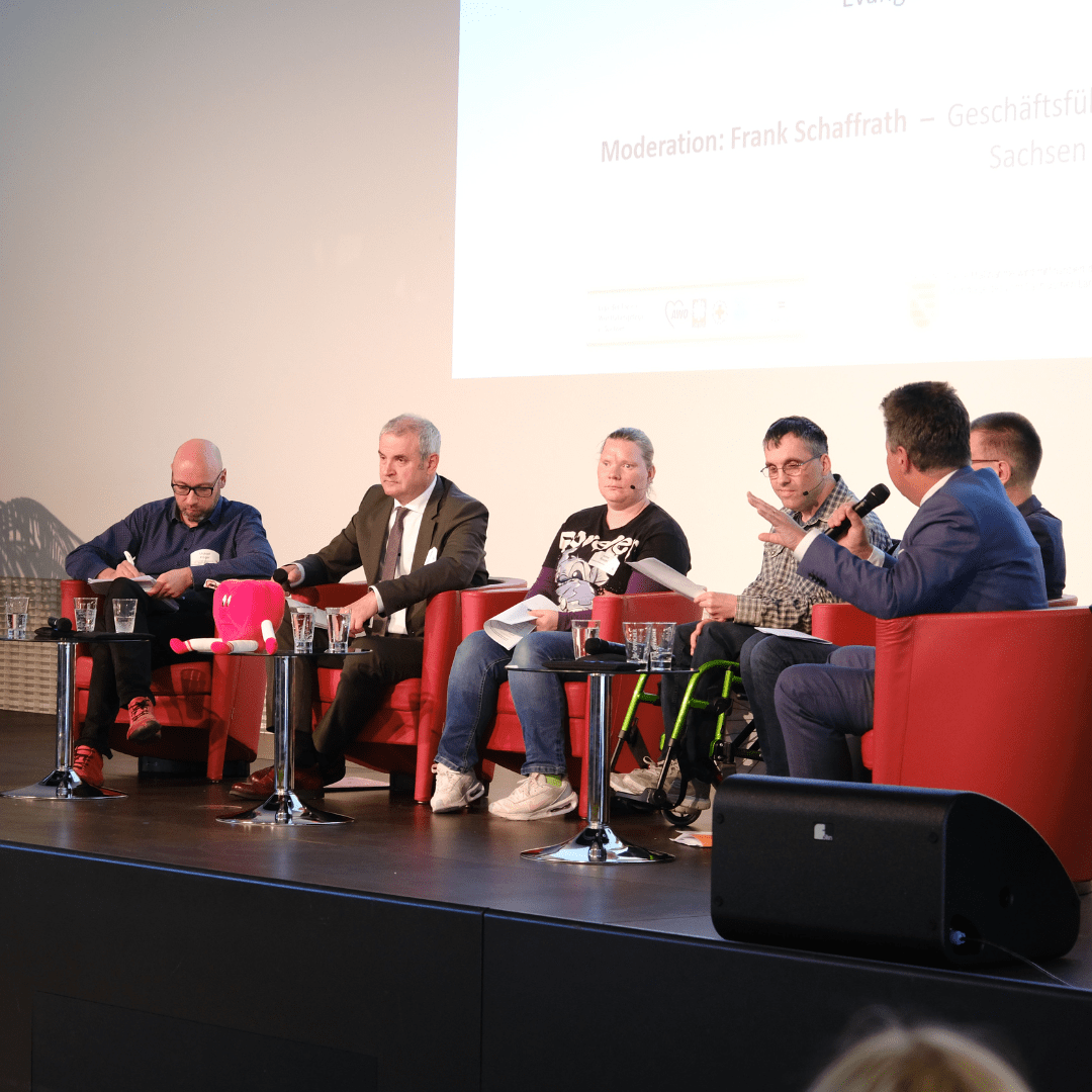 Am Nachmittag warf die Podiumsrunde noch einmal einen kritischen Blick auf das Thema Gewaltschutz und die Stellschrauben, an denen es nach wie vor zu drehen gilt. Aber auch bereits Erreichtes wurde in den Blick genommen. Alle Beteiligten waren sich einig: Die Fachstelle KogGE leistet in Sachsen einen enorm wichtigen Beitrag, um für das Thema Gewaltschutz zu sensibilisieren und Menschen mit Behinderungen an Entscheidungsprozessen zu beteiligen.