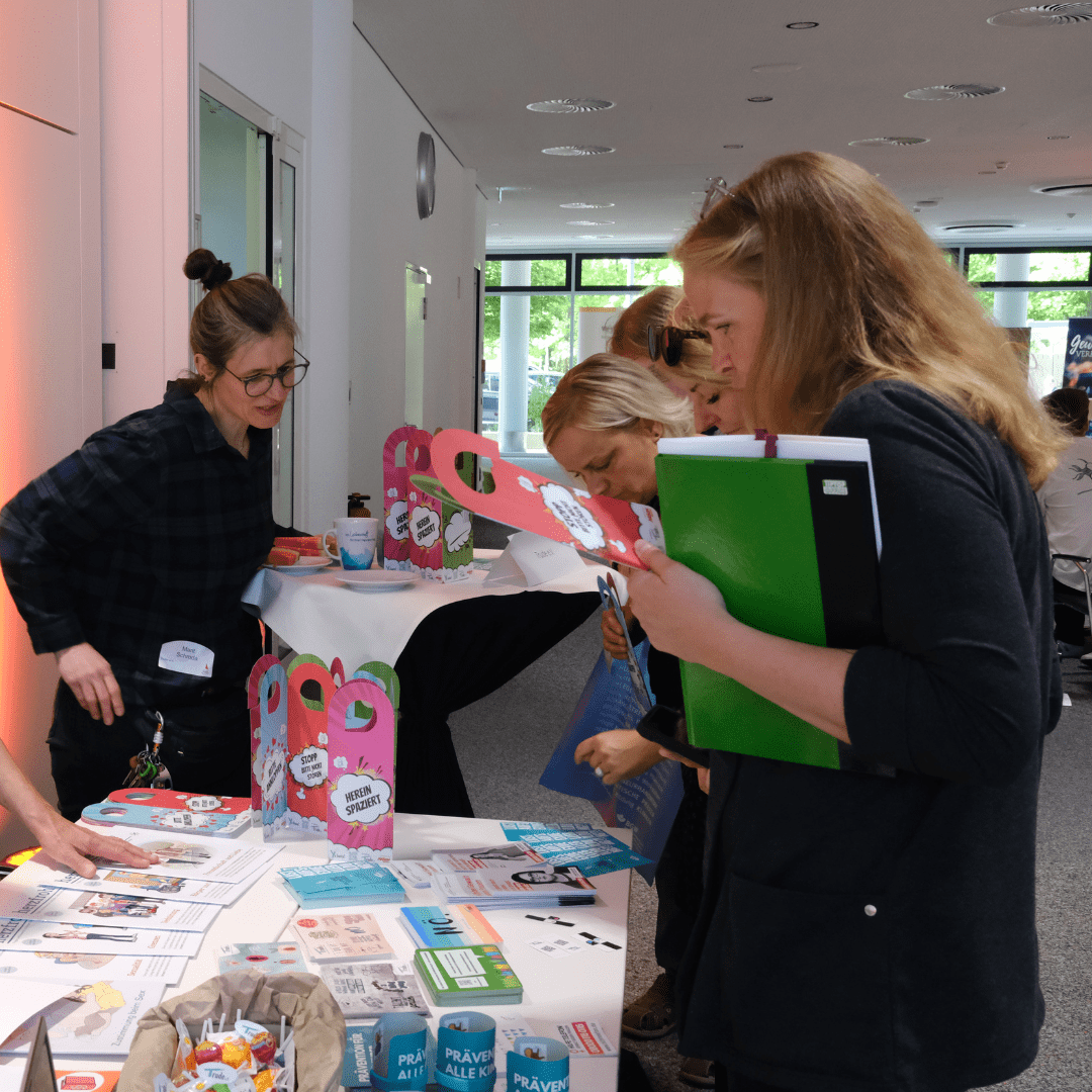 In der darauffolgenden Mittagspause und dem Netzwerkcafé hatten die Teilnehmenden Gelegenheit, mit verschiedenen Akteur:innen ins Gespräch zu kommen – etwa dem Opferschutz der Polizei Sachsen, der Sexualberatung oder der Täterberatungsstelle ESCAPE.