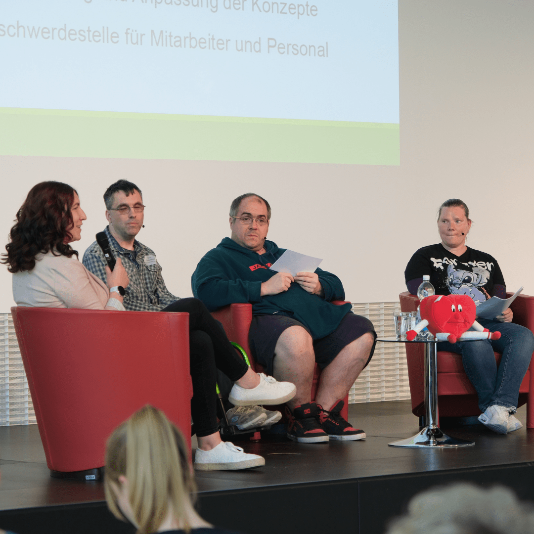 Gewaltschutz umfasst verschiedene Blickwinkel und erfordert besonders die Stimmen der Betroffenen. Daher freuten wir uns sehr, dass im anschließendem Beitrag Vertreter:innen der Werkstatträte und eine Frauenbeauftragte selbst zu Wort kamen.