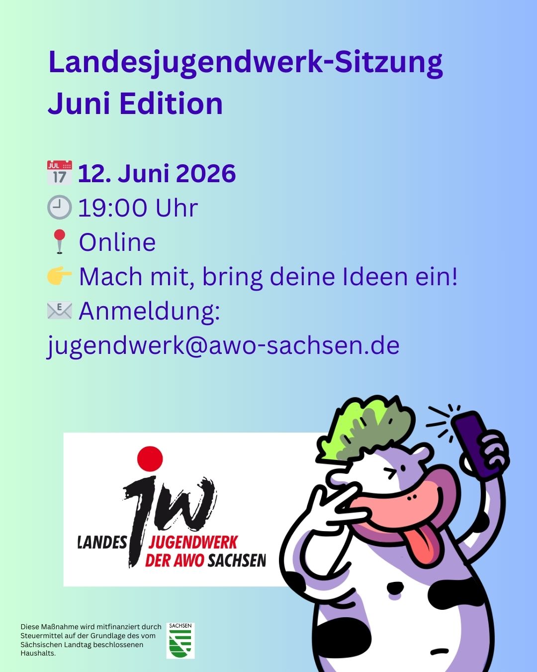 Wie? Schreib eine Mail an jugendwerk@awo-sachsen.de und du erhälst alle notwendigen Einwahldaten. Wir freuen uns auf dich.